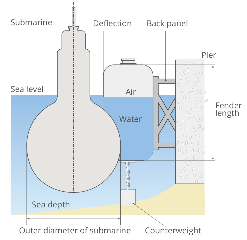 Our hydro pneumatic fenders provide advanced underwater protection for submarines and naval vessels through innovative engineering. These specialized marine solutions utilize a precisely balanced combination of air and water (30%-70% adjustable ratio) with integrated counterweight systems to maintain optimal vertical positioning during all berthing operations. The pneumatic fenders’ unique design ensures continuous hull protection while accommodating various pressure settings to meet different operational requirements.